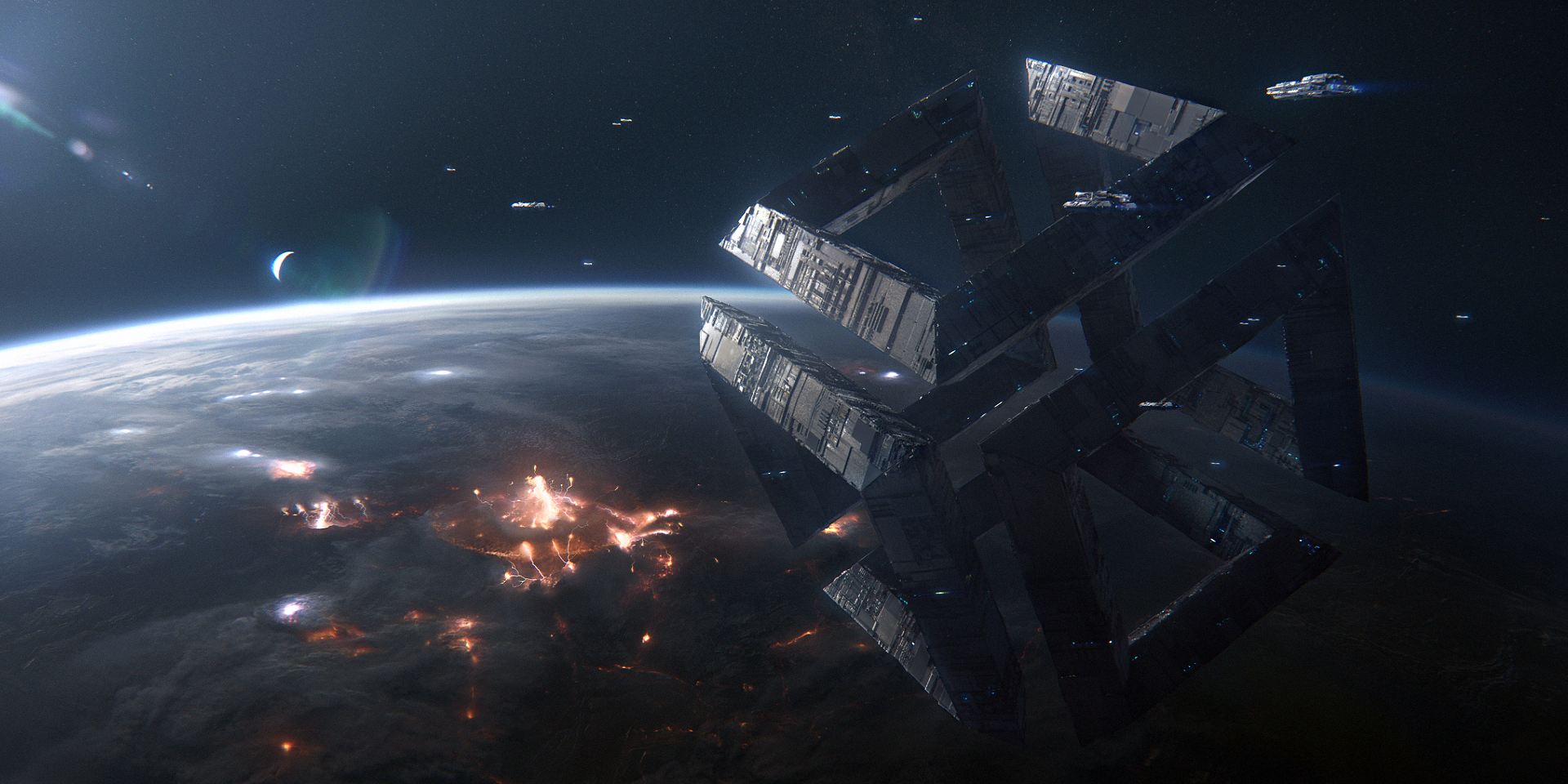 Personal 3D DMP using Clarisse : Space Station Infinity above an erupting volcanic planet